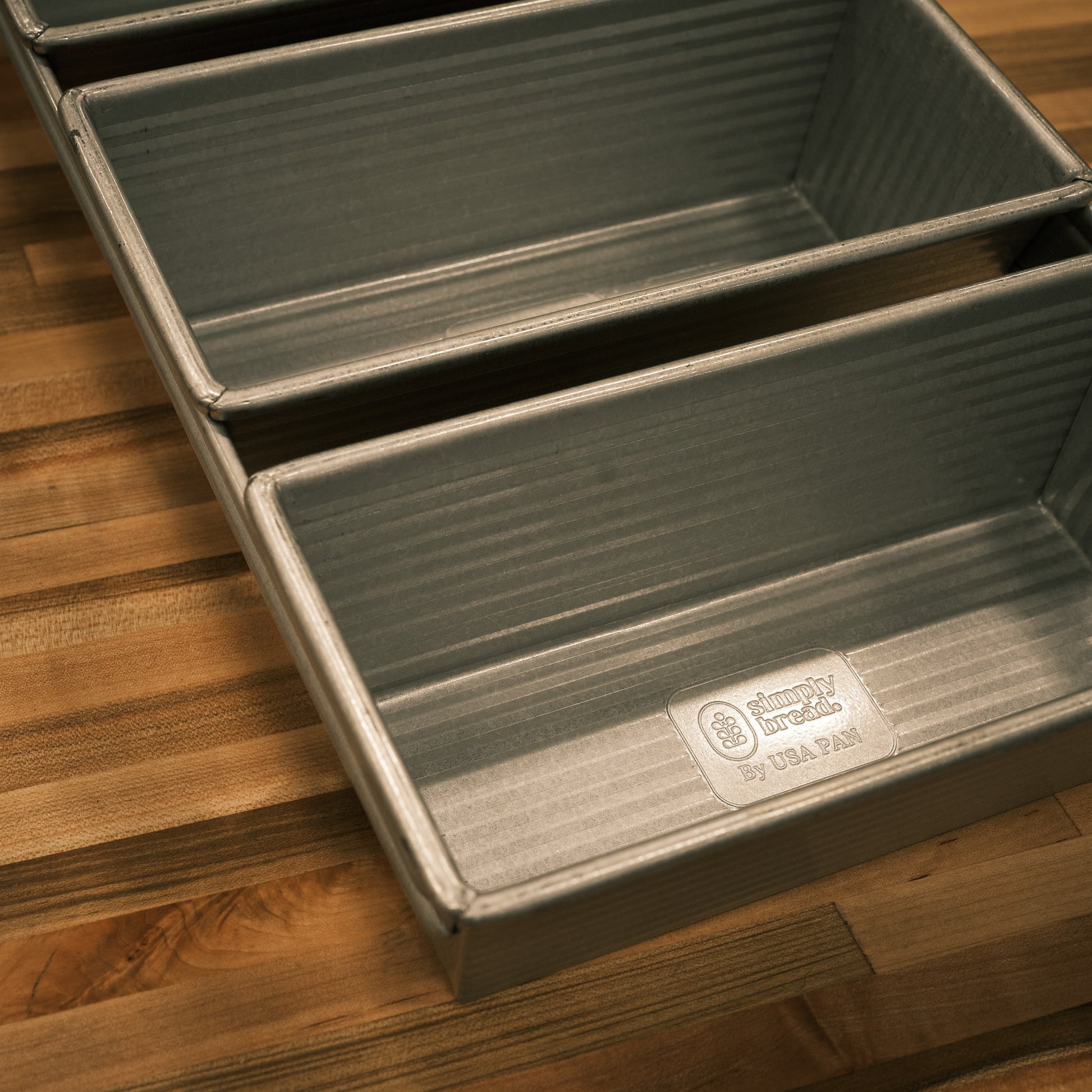 Exclusively made for the Simply Bread Oven, these USA Pan strap pans are designed to help micro-bakers scale production with ease. Each strap holds four loaf tins in one sturdy frame, and two straps fit perfectly on a single oven deck. That means up to eight loaves per deck — or 24 loaves in a full oven load — with the same reliability and quality that USA Pan is known for.